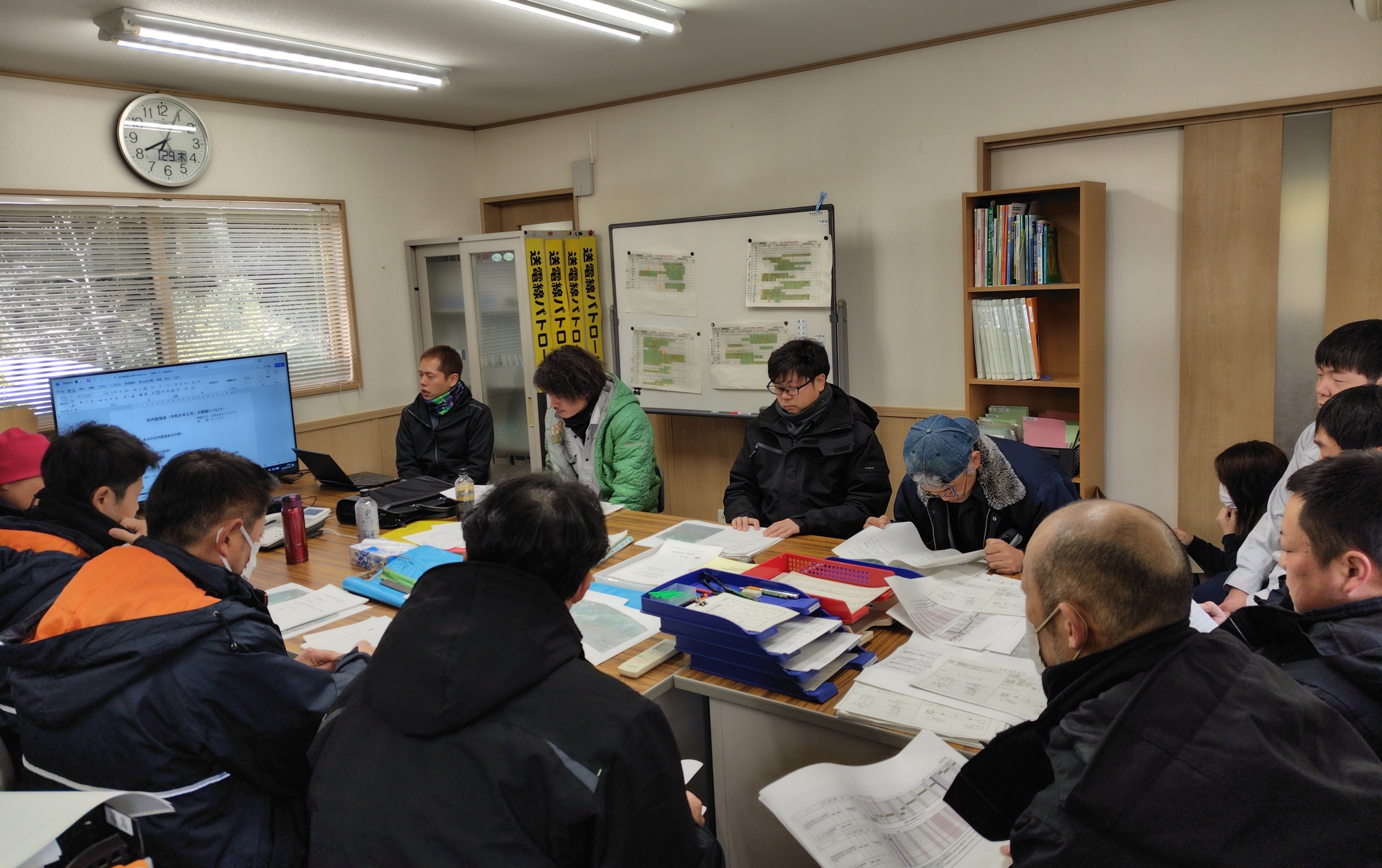 今月の社内勉強会は、3月までの作業予定の照し合わせと、次に入る工事の 乗込み教育を行いました。 社長から、安全に且つ正確に施工するよう、お話がありました。